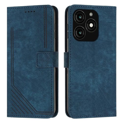 Funda de Cuero para Itel A70 Skin Feel con Patrón de Rayas y Cordón (Azul)