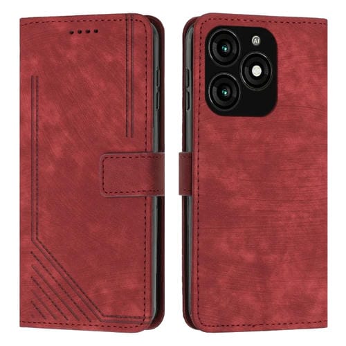 Funda de Cuero para Itel A70 Skin Feel con Patrón de Rayas y Cordón (Rojo)