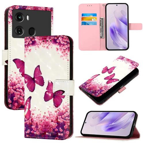 Funda de Cuero para Itel P40 con Tapa Horizontal y Pintura 3D (Mariposa Rosa)
