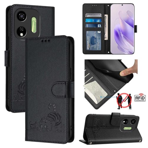Estuche para Itel P55 5G Cuero Rfid con Patrón en Relieve y Cordón (Negro)