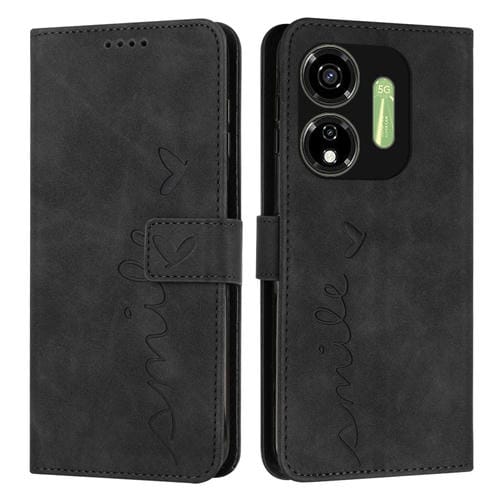 Funda para Itel P55 5G Skin Feel Heart de Cuero en Relieve con Cordón Largo (Negro)