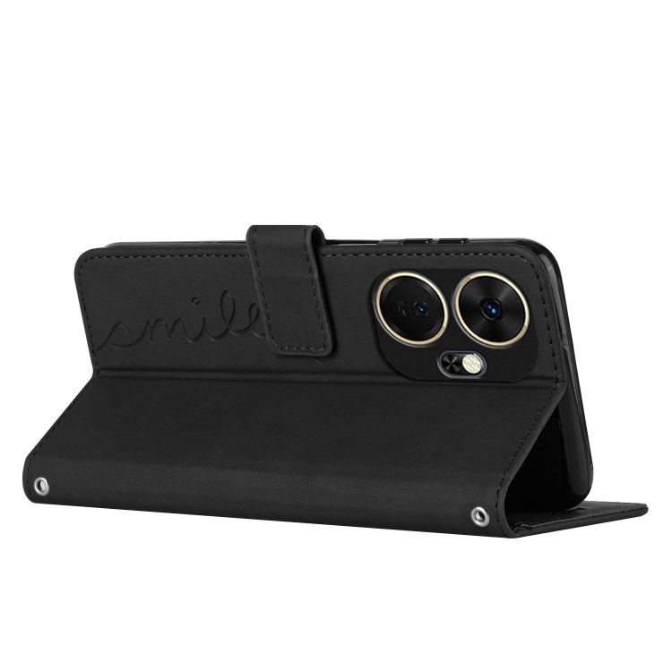 Funda de Cuero con Relieve y Cordón Largo para Itel P55 (Negro)