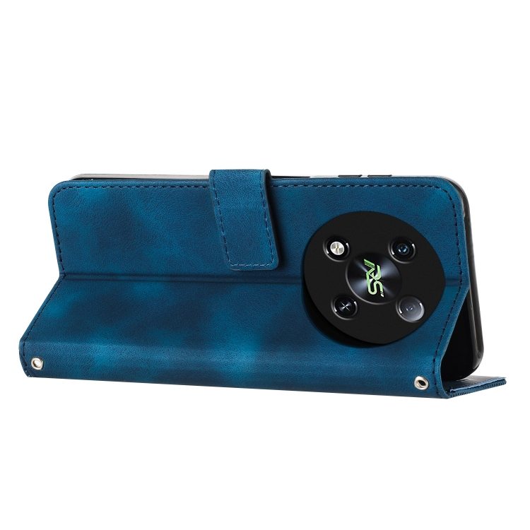 Funda de Cuero para Itel Rs4 Dream Triangle con Cordón Largo (Azul)