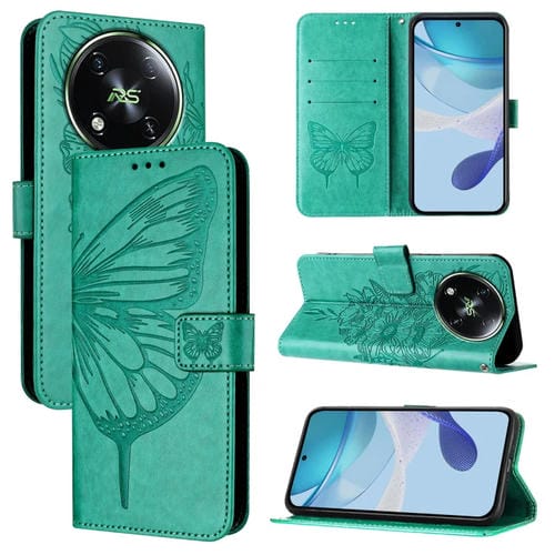 Funda de Cuero para Itel Rs4 S666Ln con Mariposa en Relieve (Verde)