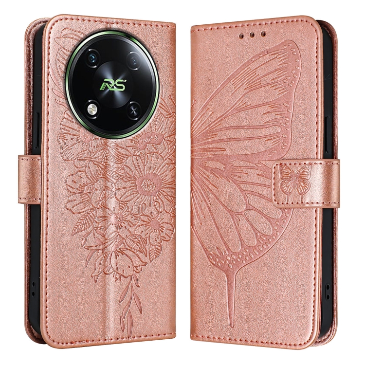 Funda para Itel Rs4 S666Ln de Cuero con Mariposa en Relieve (Oro Rosa)