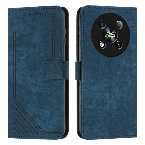 Funda de Cuero para Itel Rs4 con Patrón de Rayas y Cordón (Azul)