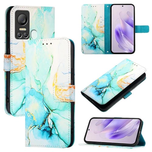 Funda para Itel S18 Vision 5 Pt003 de Cuero con Tapa y Patrón Mármol (Verde)