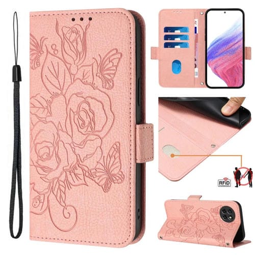Estuche para Itel S23 de Cuero Antirrobo RFID con Rosa en Relieve (Rosa)