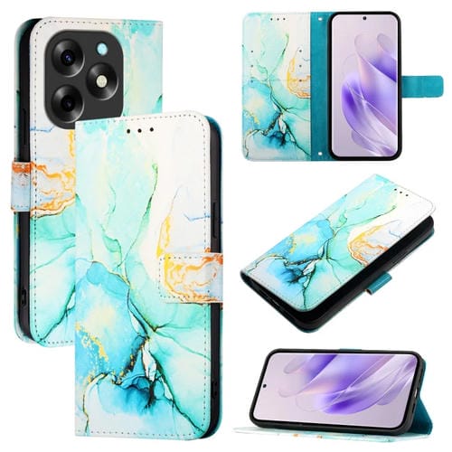 Funda de Cuero con Tapa para Itel S23 + Pt003 con Patrón de Mármol (Verde)