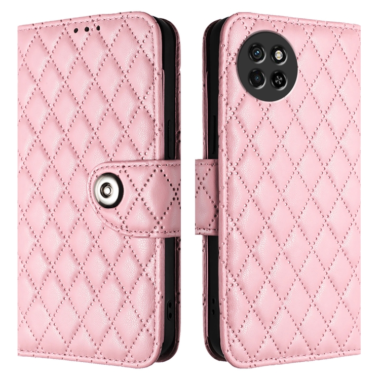 Funda para Itel S23 S665L con Tapa de Cuero, Textura Rómbica y Cordón (Rosa)