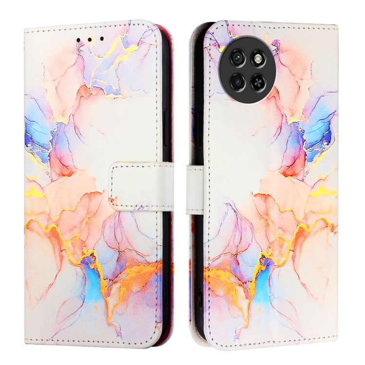 Funda de Cuero con Tapa para Itel S23 S665L Pt003 con Patrón Mármol (Galaxy Marble White)