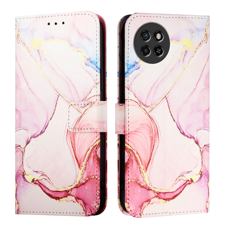 Funda para Teléfono Itel S23 S665L Pt003 Cuero con Tapa y Patrón de Mármol (Oro Rosa)