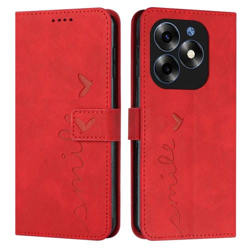 Funda para Itel S23 Skin Feel Heart Cuero en Relieve con Cordón Largo (Rojo)