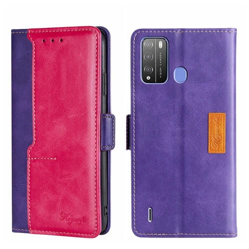 Funda de Cuero para Itel Vision 1 Pro con Hebilla Lateral y Color de Contraste (Púrpura + Rosa)