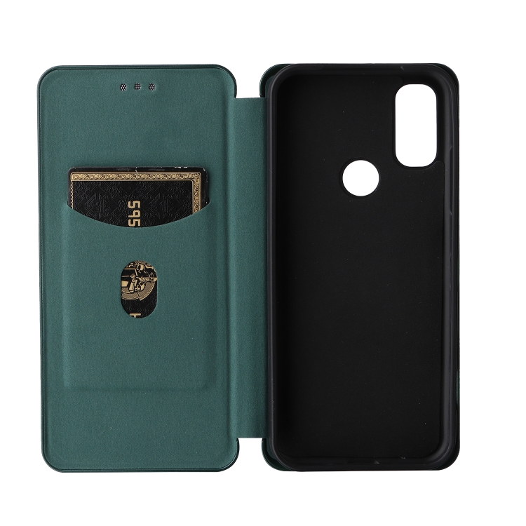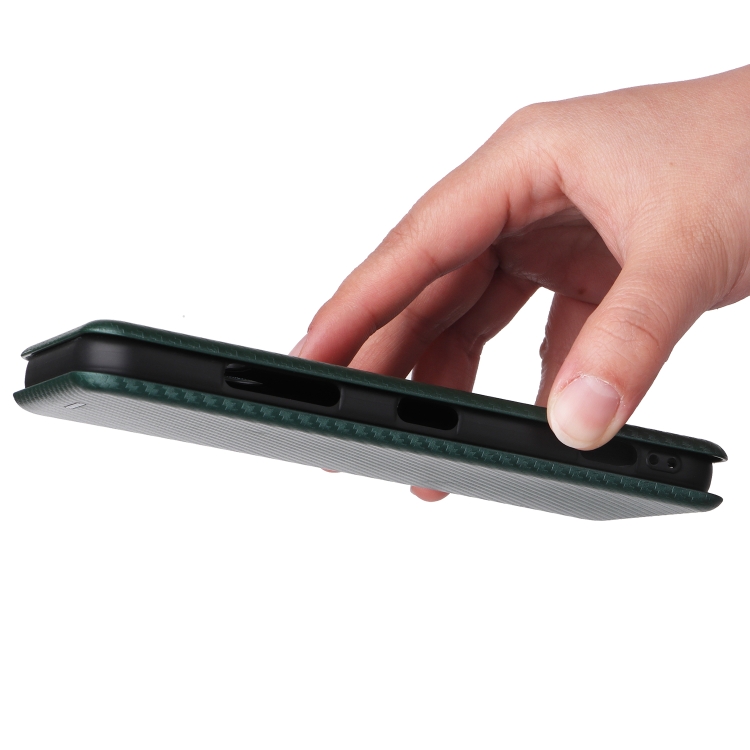 Funda de Cuero para Kyocera Android One S10 con Textura de Fibra de Carbono (Verde)