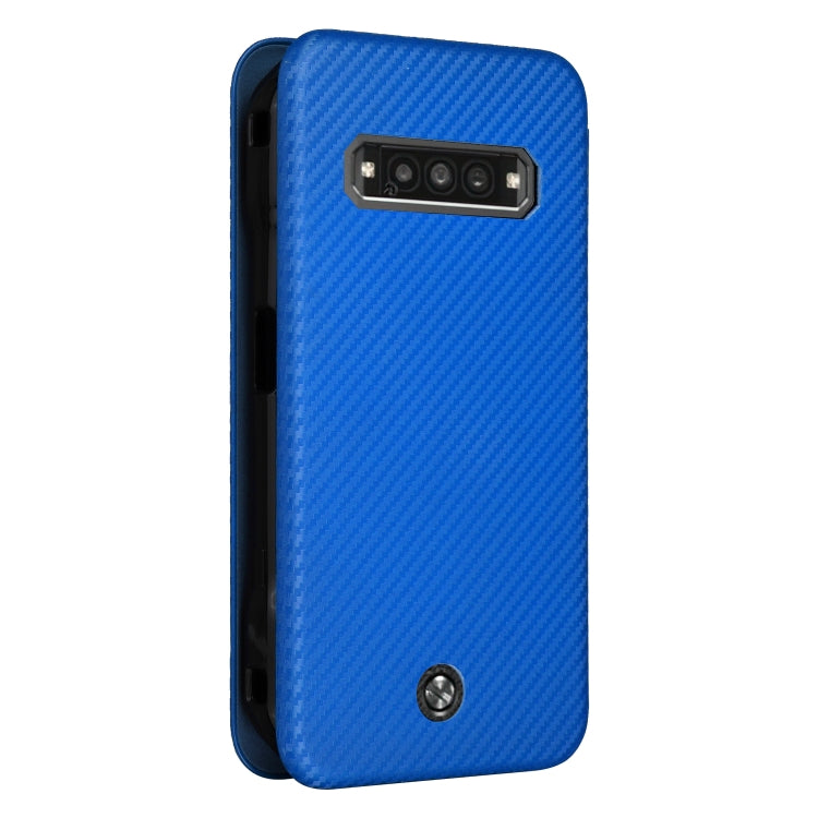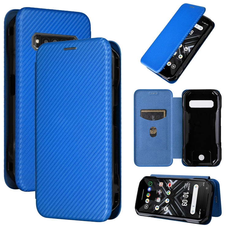 Funda de Cuero para Kyocera Torque G06 Kyg03 con Tapa y Textura de Fibra de Carbono (Azul)