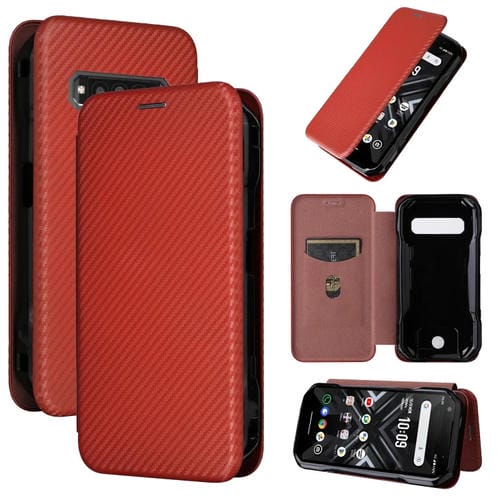 Funda de Cuero con Tapa para Kyocera Torque G06 Kyg03 con Textura de Fibra de Carbono (Marrón)