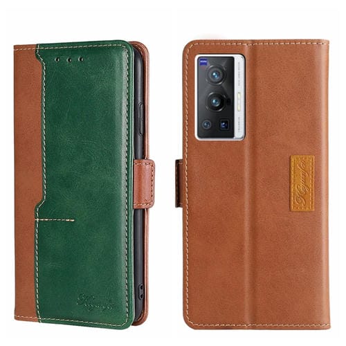 Para la Caja de Teléfono de Cuero de Hebilla Lateral de Color Vivo X70 Pro Contrast (Marrón Claro + Verde)