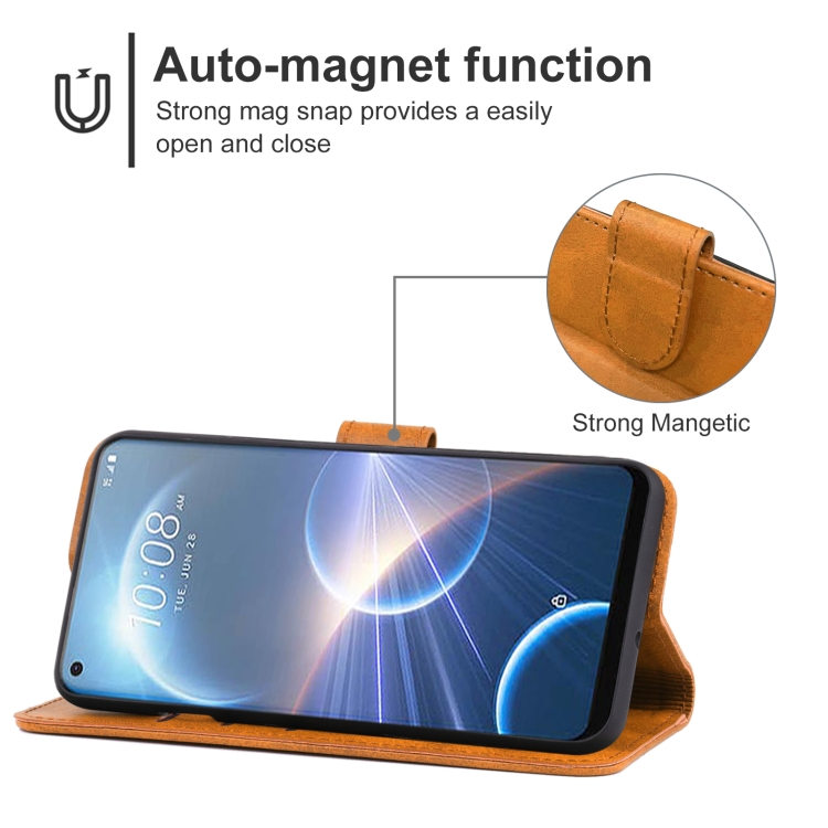 Caja de Cuero para Teléfono HTC Desire 22 Pro (Marrón)