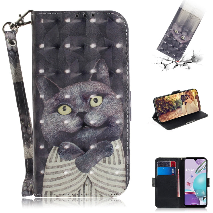 Funda de Cuero Abatible Horizontal para LG Aristo 5 con Dibujo 3D, Soporte, Ranuras y Cordón (Hug Cat)