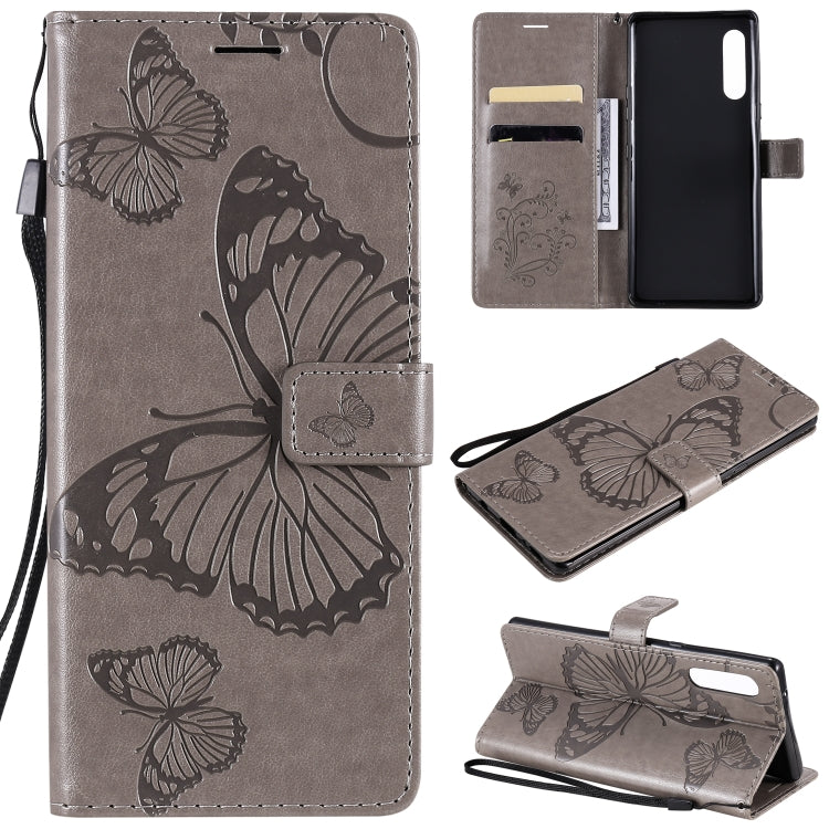 Funda de Cuero para LG G9 3D Mariposa con Tapa Horizontal, Soporte, Ranura para Tarjeta, Billetera y Cordón (Gris)