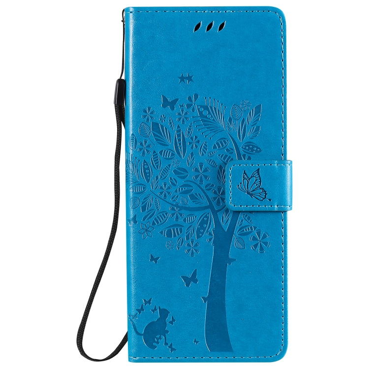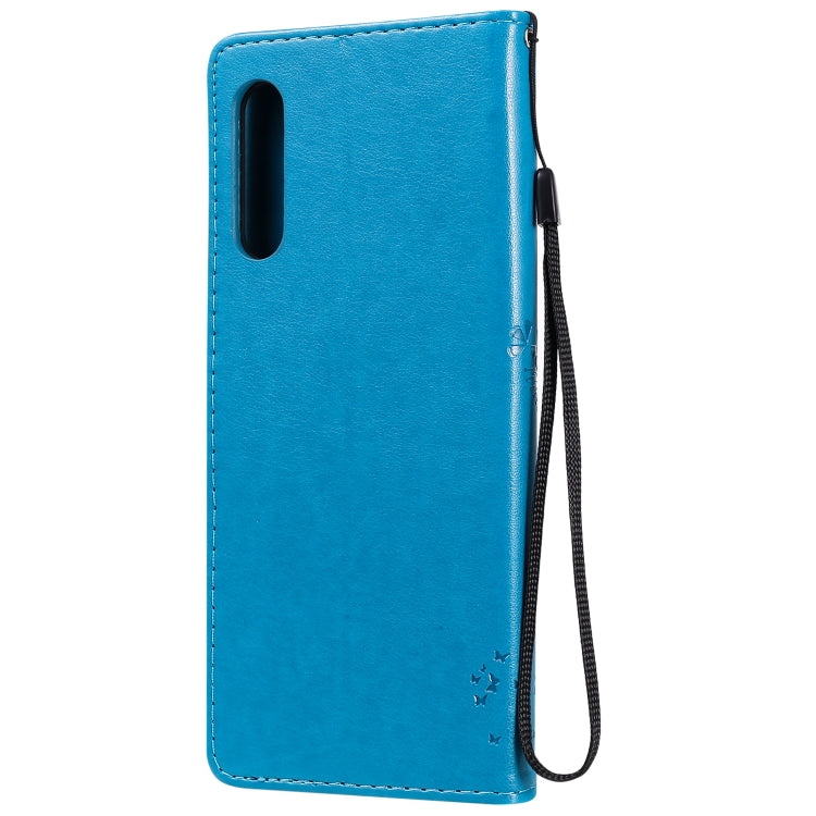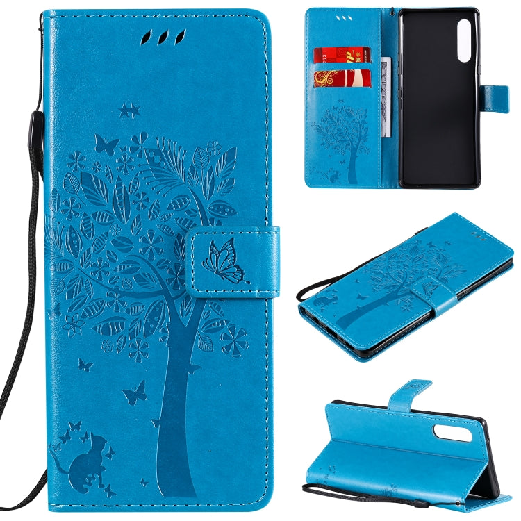 Funda de Cuero para LG G9 Tree & CAT con Tapa Horizontal, Soporte, Ranuras para Tarjetas, Billetera y Cordón (Azul)