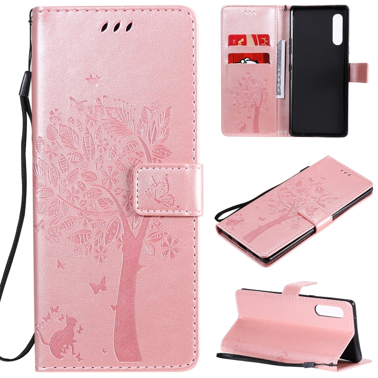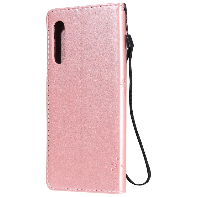 Funda de Cuero para LG G9 Tree & CAT con Tapa Horizontal, Soporte, Ranuras para Tarjetas, Billetera y Cordón (Oro Rosa)