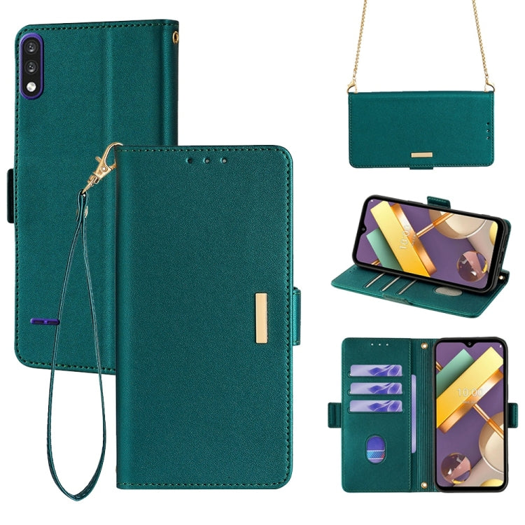 Funda de Cuero para Teléfono LG K22 con Cadena Cruzada (Verde)
