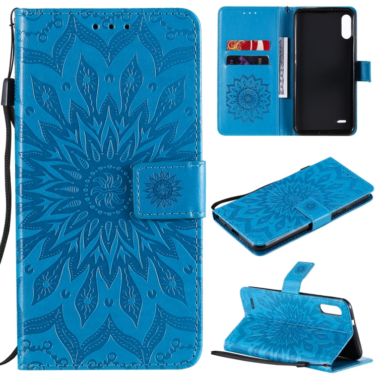 Funda de Cuero LG K22 / K22 Plus con Tapa Horizontal, Ranura para Tarjeta, Soporte y Cordón (Azul)