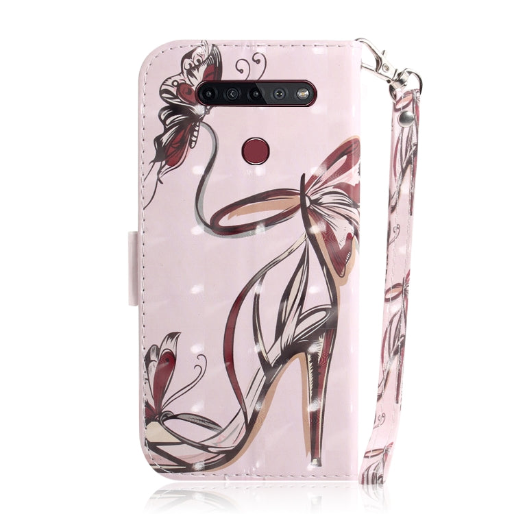 Funda de Cuero Abatible para LG K41S K51S con Dibujo 3D, Soporte, Ranuras y Cordón (Mariposa de Tacón Alto)