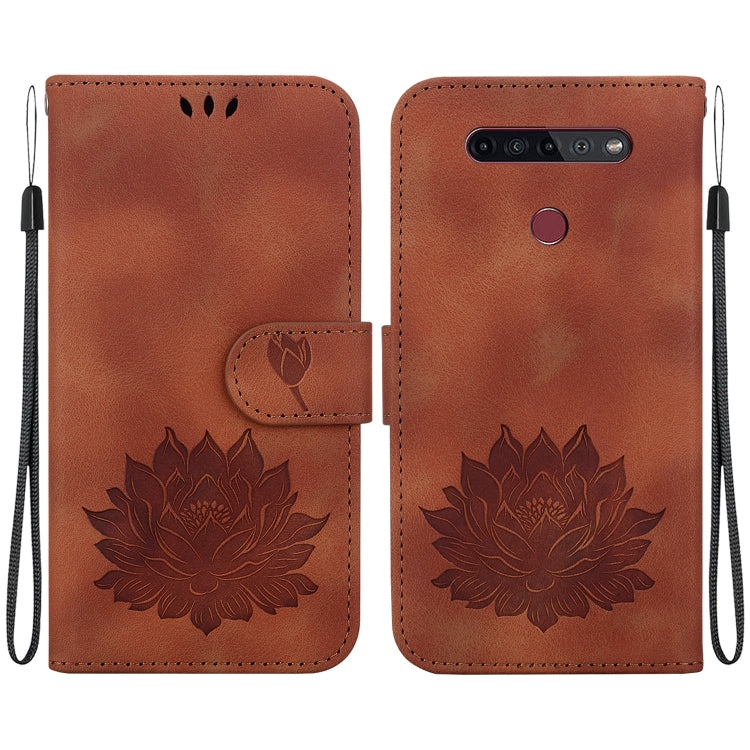 Funda para LG K41S y K51S de Cuero con Relieve de Loto (Marrón)