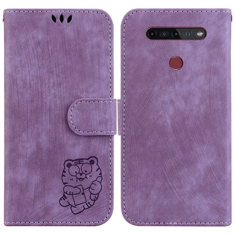 Funda para Teléfono LG K41S K51S Cuero con Relieve Little Tiger (Púrpura)