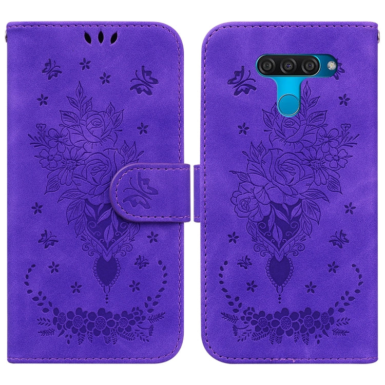 Funda de Cuero Butterfly Rose para LG K50 y Q60 (Púrpura)