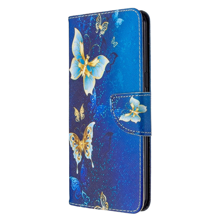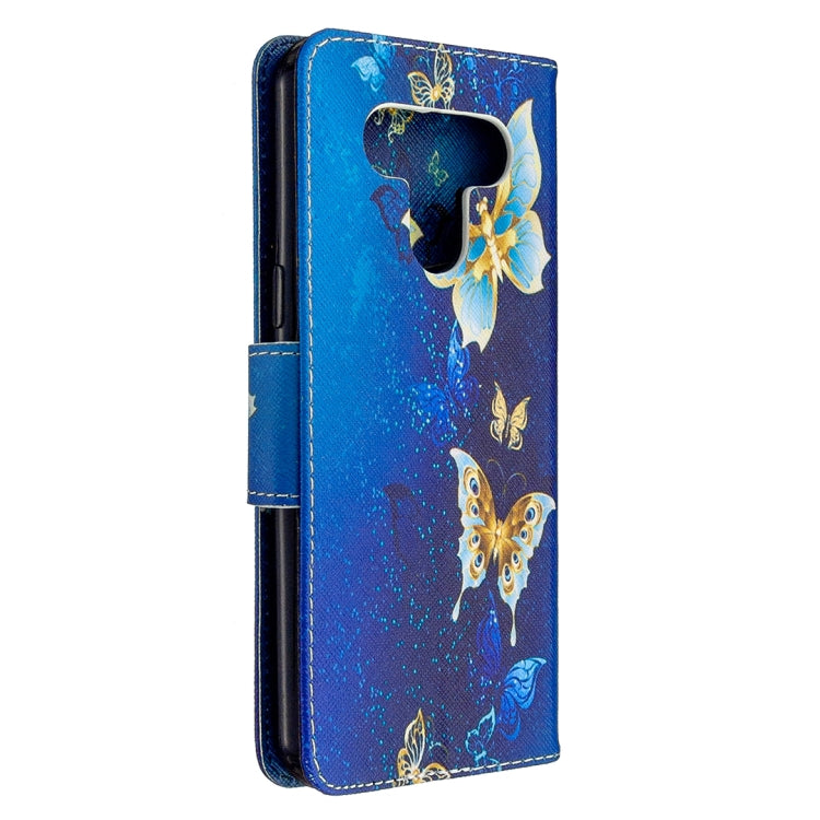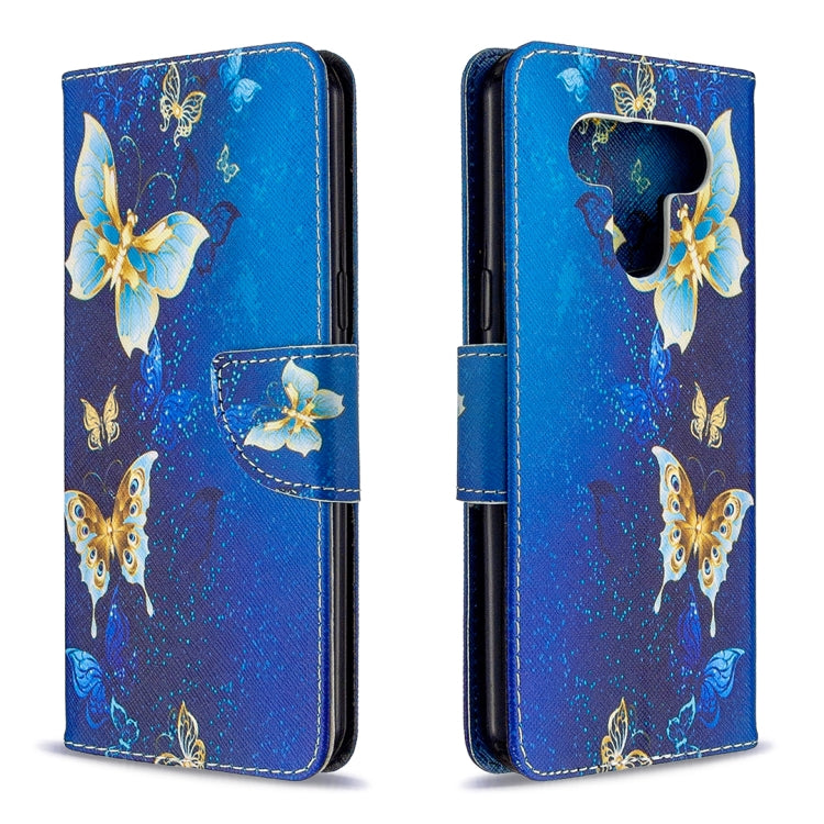 Estuche de Cuero Abatible Horizontal para LG K51 con Soporte, Ranuras para Tarjetas y Billetera (Mariposa Dorada)