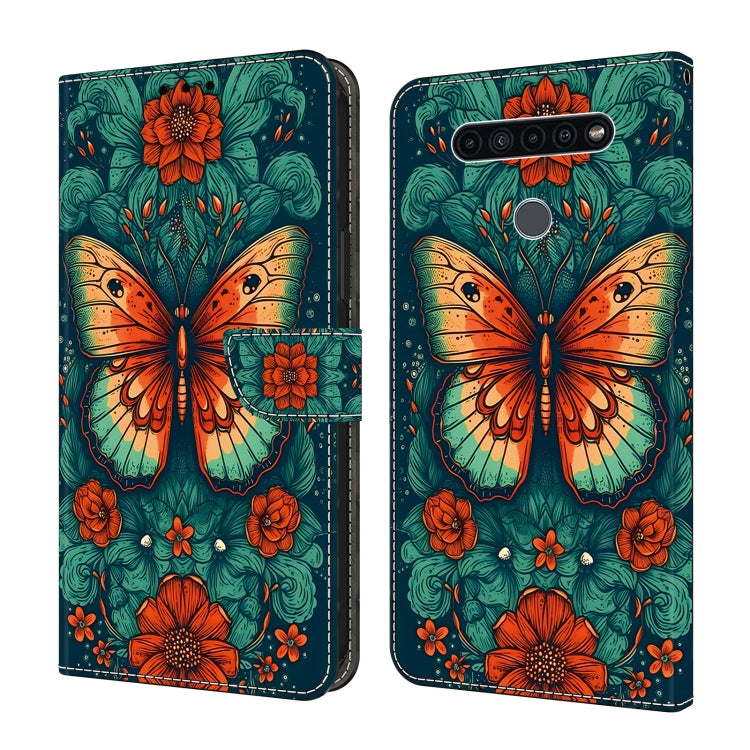 Funda de Cuero para LG K51 con Cristales y Diseño Mariposa de Flores