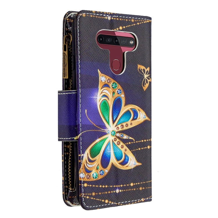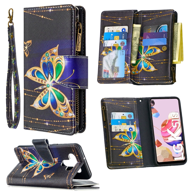 Funda de Cuero para LG K51 con Patrón de Dibujo, Cremallera, Tapa Horizontal, Soporte y Ranuras para Tarjetas (Mariposa Grande)