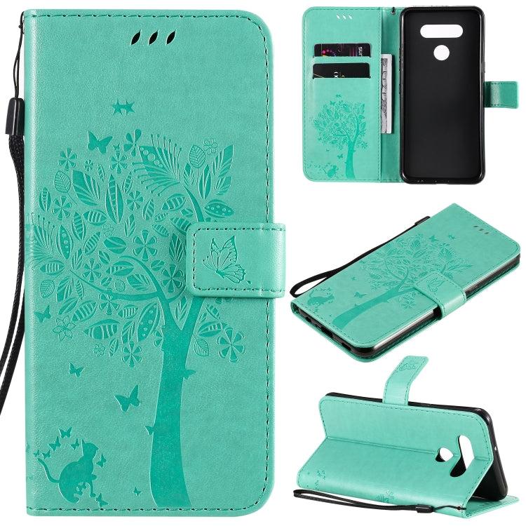 Funda de Cuero para LG K51 Tree & CAT con Tapa Horizontal, Soporte, Ranuras para Tarjetas, Billetera y Cordón (Verde)
