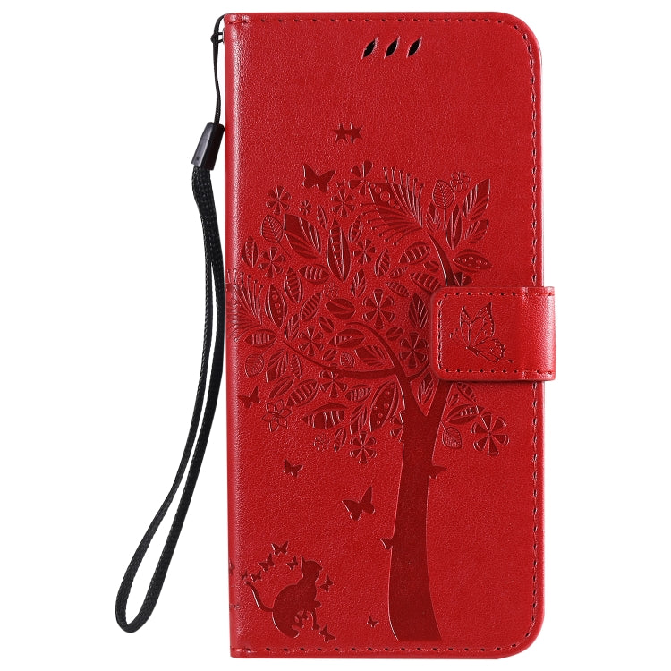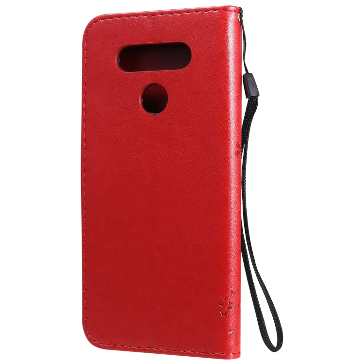 Funda de Cuero para LG K51 Tree & CAT con Tapa Horizontal, Soporte, Ranuras y Cordón (Rojo)