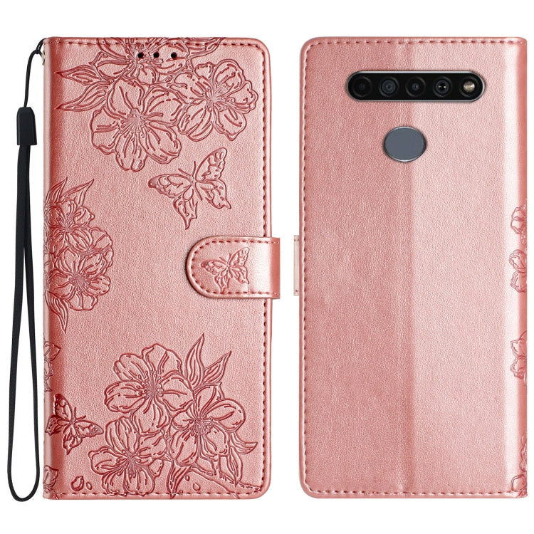 Funda para LG K51S Cherry Blossom Butterfly Skin Feel de PU en Relieve (Oro Rosa)