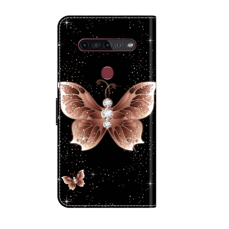 Funda Protectora de Cuero para LG K51S Crystal 3D a Prueba de Golpes (Mariposa de Diamante Rosa)