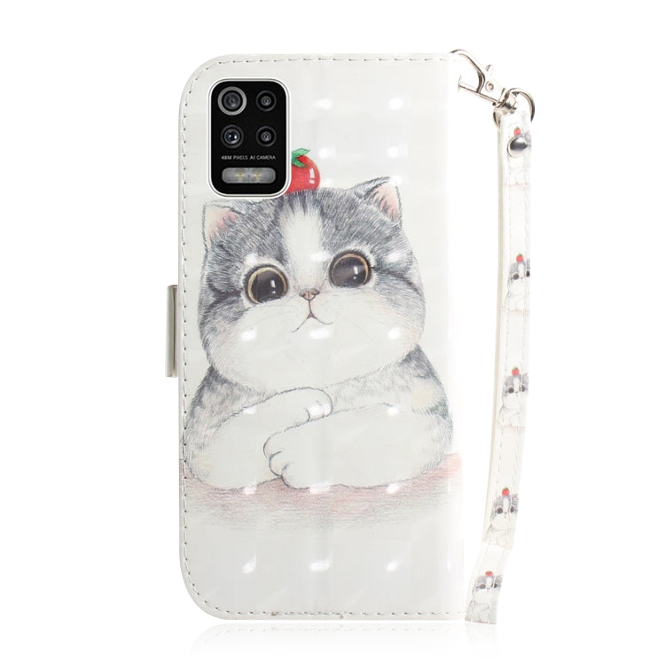 Funda de Cuero LG K52 con Tapa Horizontal, Soporte, Ranuras para Tarjetas y Cordón (Cute Cat)