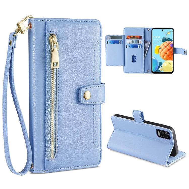 Funda de Cuero para Teléfono LG K52 Sheep Texture Cross-Body Zipper Wallet (Azul)