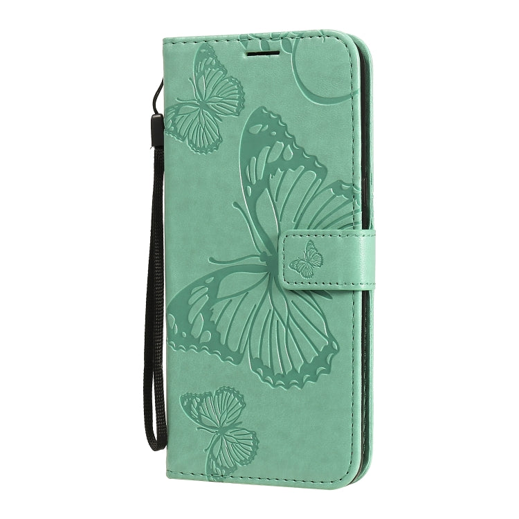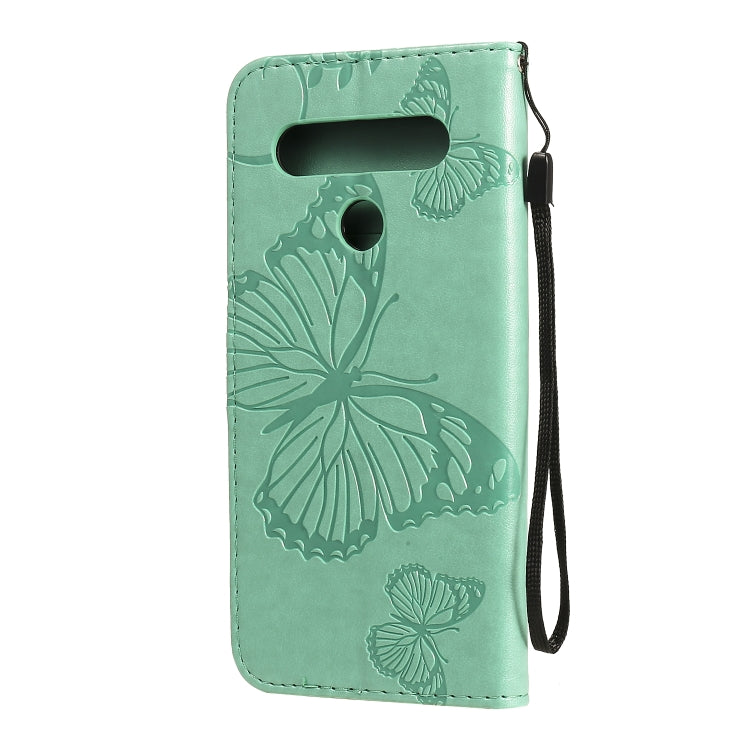 Funda de Cuero LG K61 3D Mariposa con Tapa Horizontal, Soporte, Ranura para Tarjeta y Cordón (Verde)