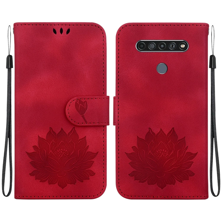 Funda de Cuero para LG K61 con Relieve de Loto (Rojo)