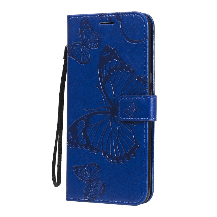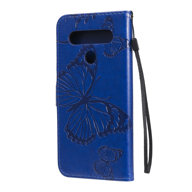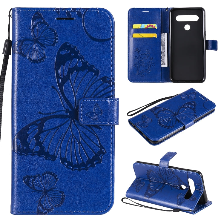 Funda de Cuero para LG K61 con Tapa Horizontal, Patrón Mariposa 3D, Soporte, Ranura Tarjeta y Cordón (Azul)