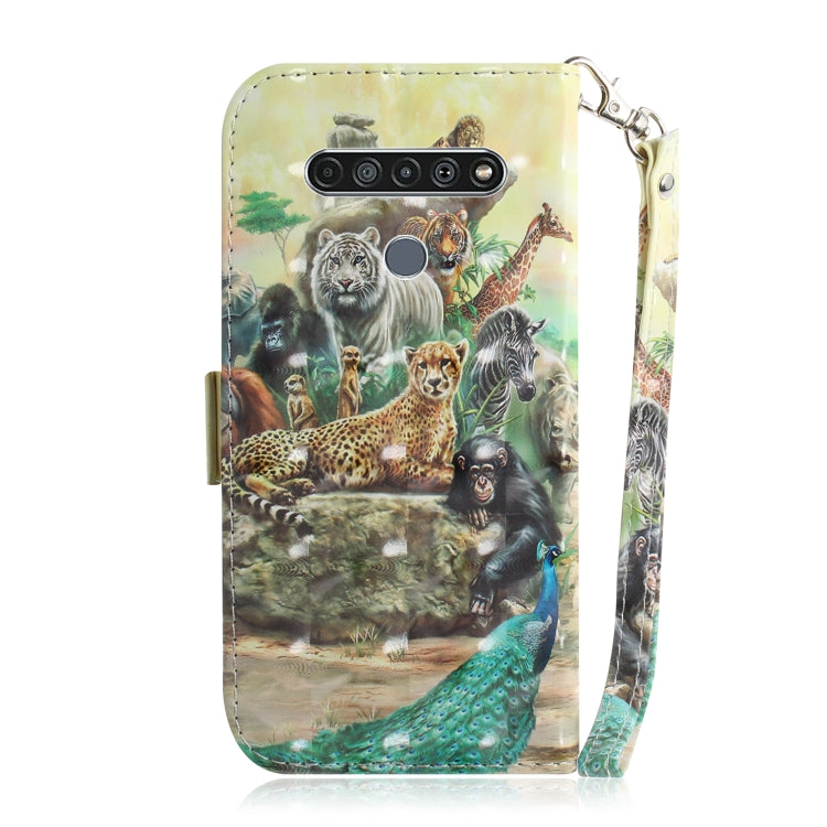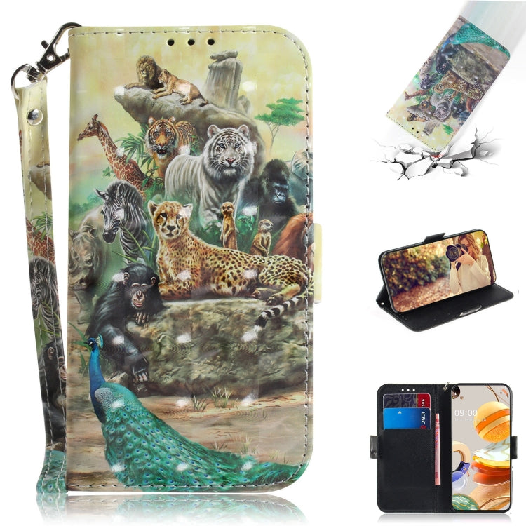 Funda de Cuero LG K61 con Tapa Horizontal, Dibujo 3D, Soporte, Ranuras para Tarjetas, Billetera y Cordón (Zoo)