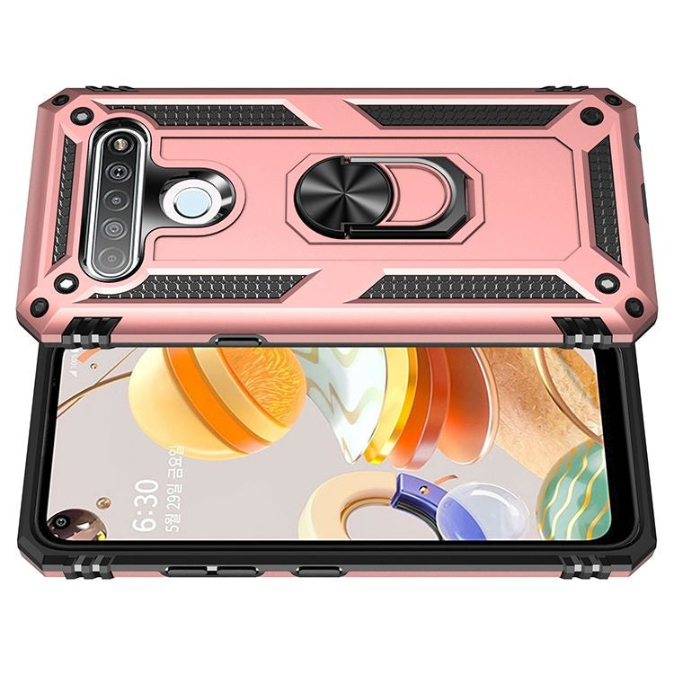 Funda Protectora TPU + PC para LG K61 con Soporte Giratorio 360° (Oro Rosa)