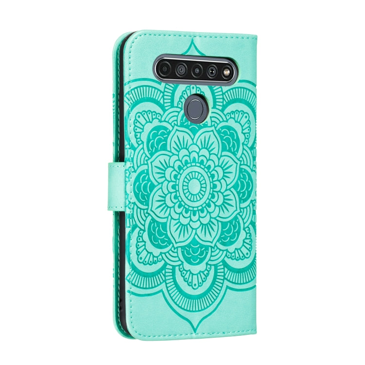 Funda de Cuero Pu para LG K61 Mandala con Diseño en Relieve, Tapa Horizontal, Soporte, Ranuras para Tarjetas y Cordón (Verde)