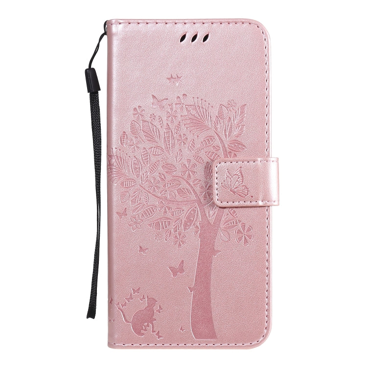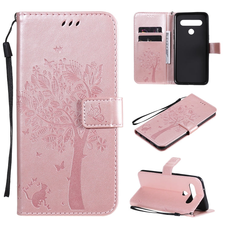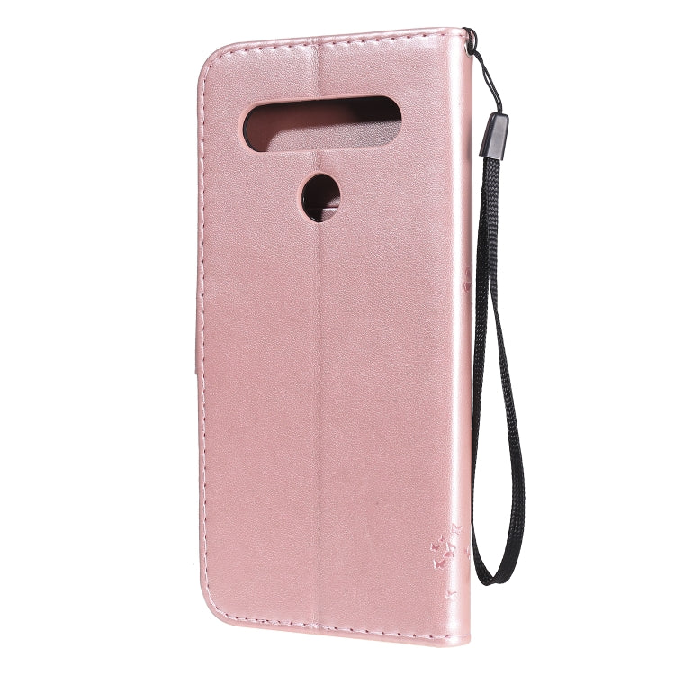 Funda de Cuero Abatible para LG K61 Tree & CAT con Soporte, Ranuras para Tarjetas, Billetera y Cordón (Oro Rosa)