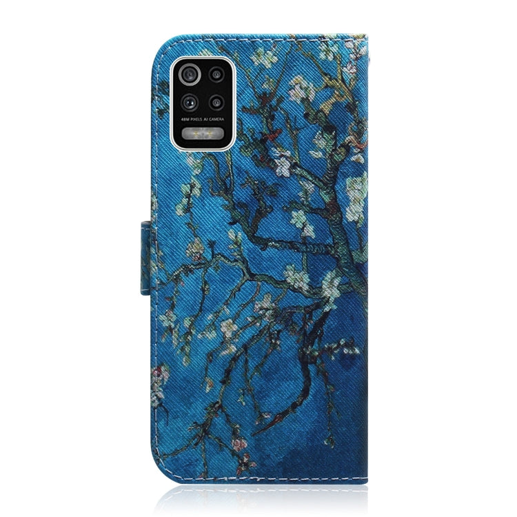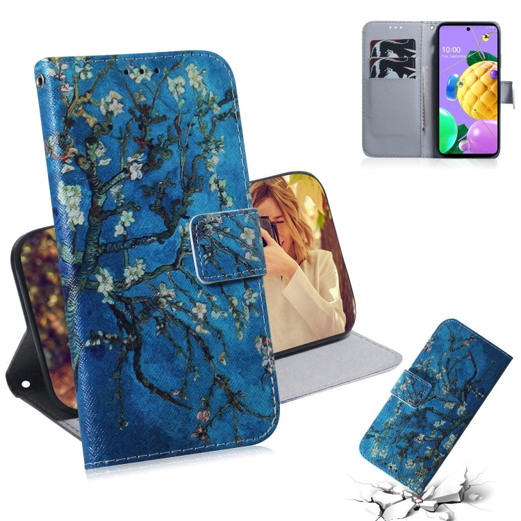 Estuche de Cuero Abatible Horizontal para LG K62 K52 Q52 con Soporte y Ranuras para Tarjetas (Flor de Albaricoque)